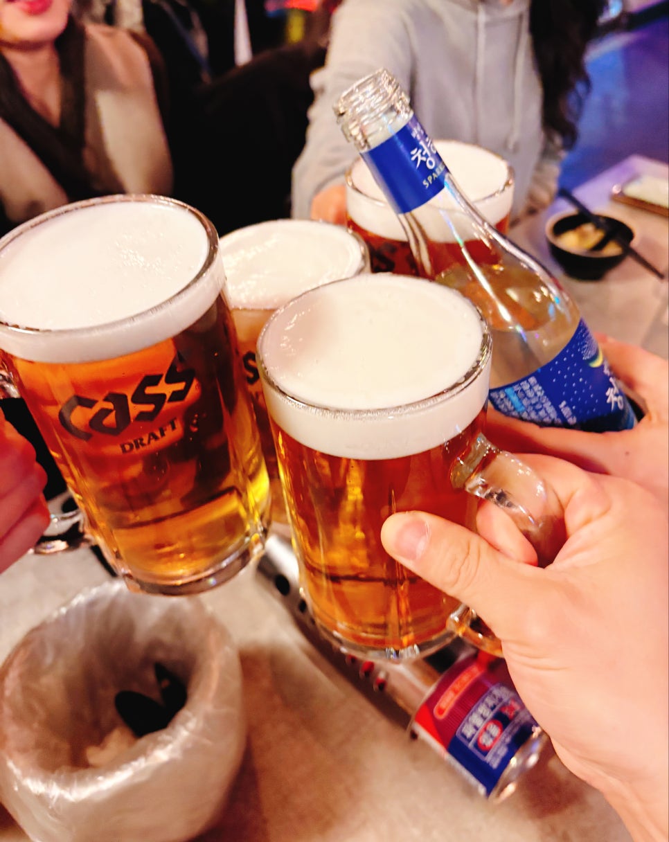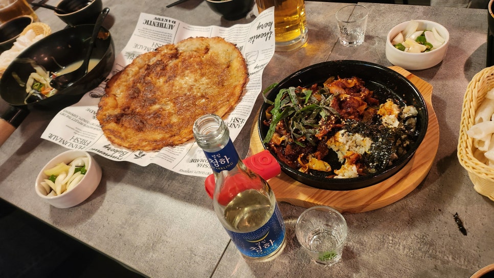 근처에 늦게까지 하는 식당을 찾아 술과 함께 건배~ (술잔에 술 이름이 너무 잘 나온 거 같지만 ppl 아닙니다 ㅋㅋㅋㅋ)
